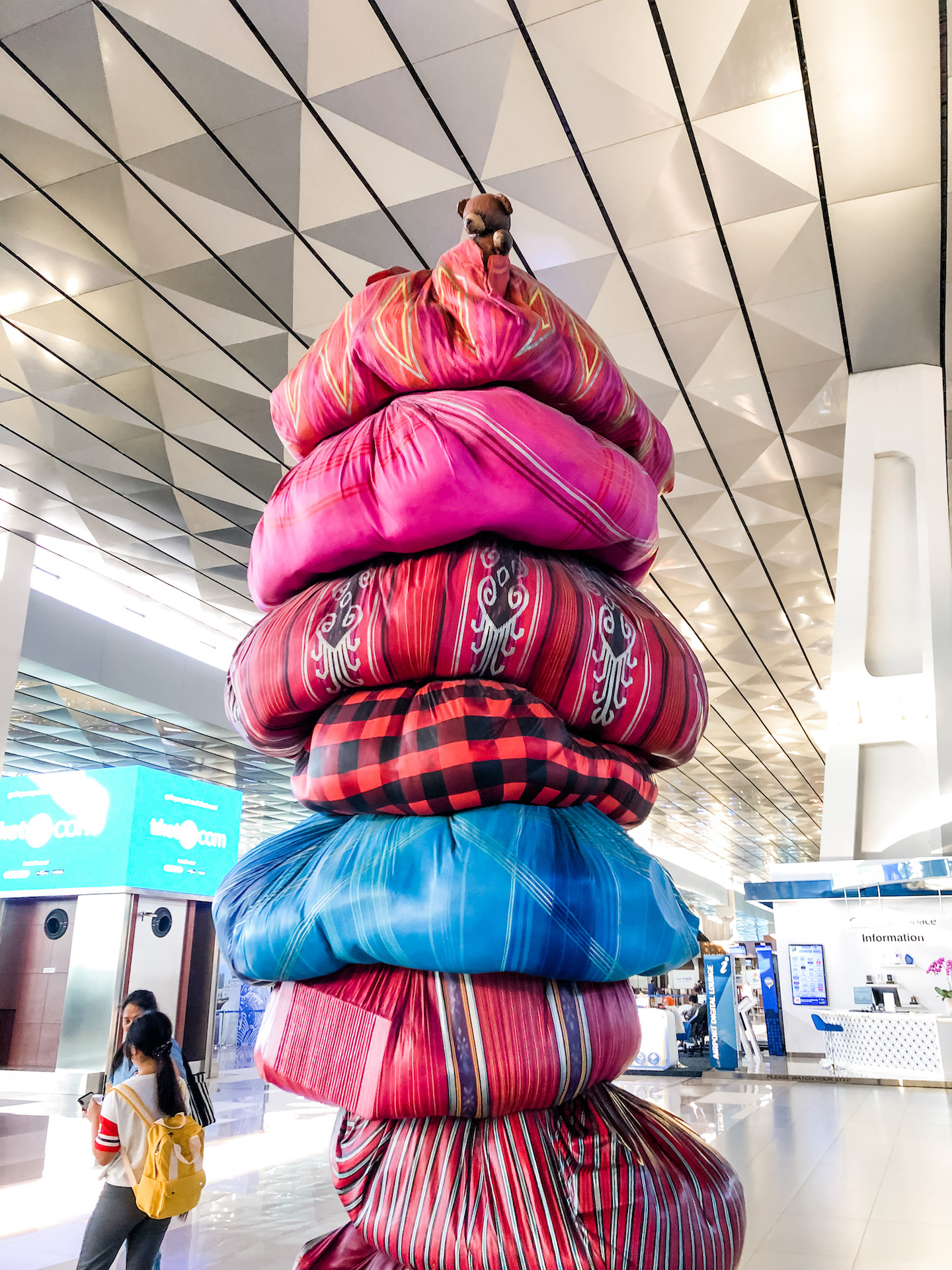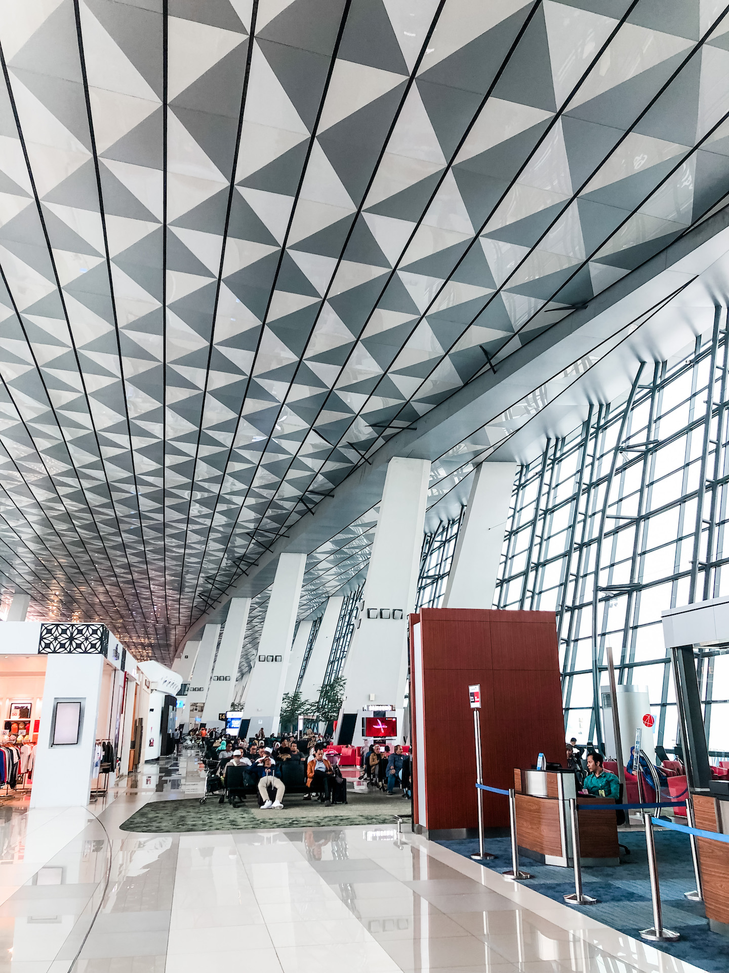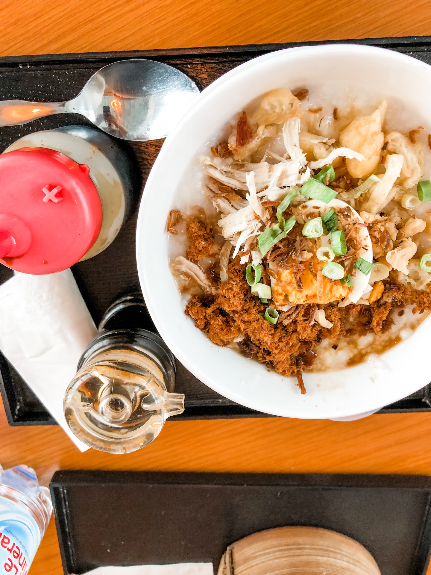 I liked the clean lines of the Jakarta airport as well as the cool artwork on display. If you know me, then you know that I enjoy all aspects of eating (whether I’m at a fancy restaurant, a hole-in-the-wall, a food truck, or airport food). This was some astounding chicken congee at the airport!