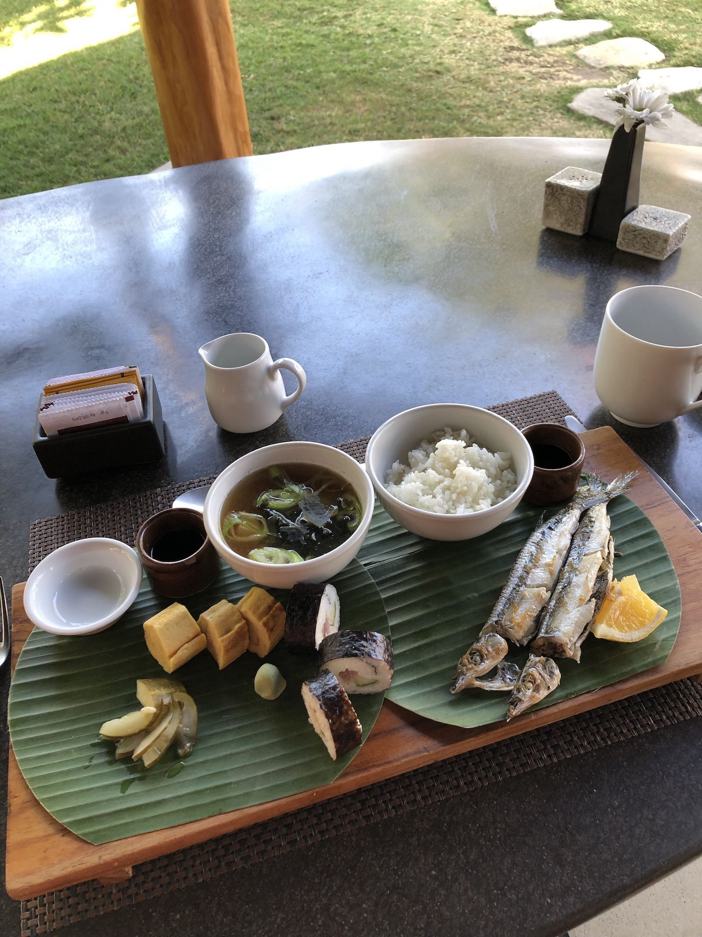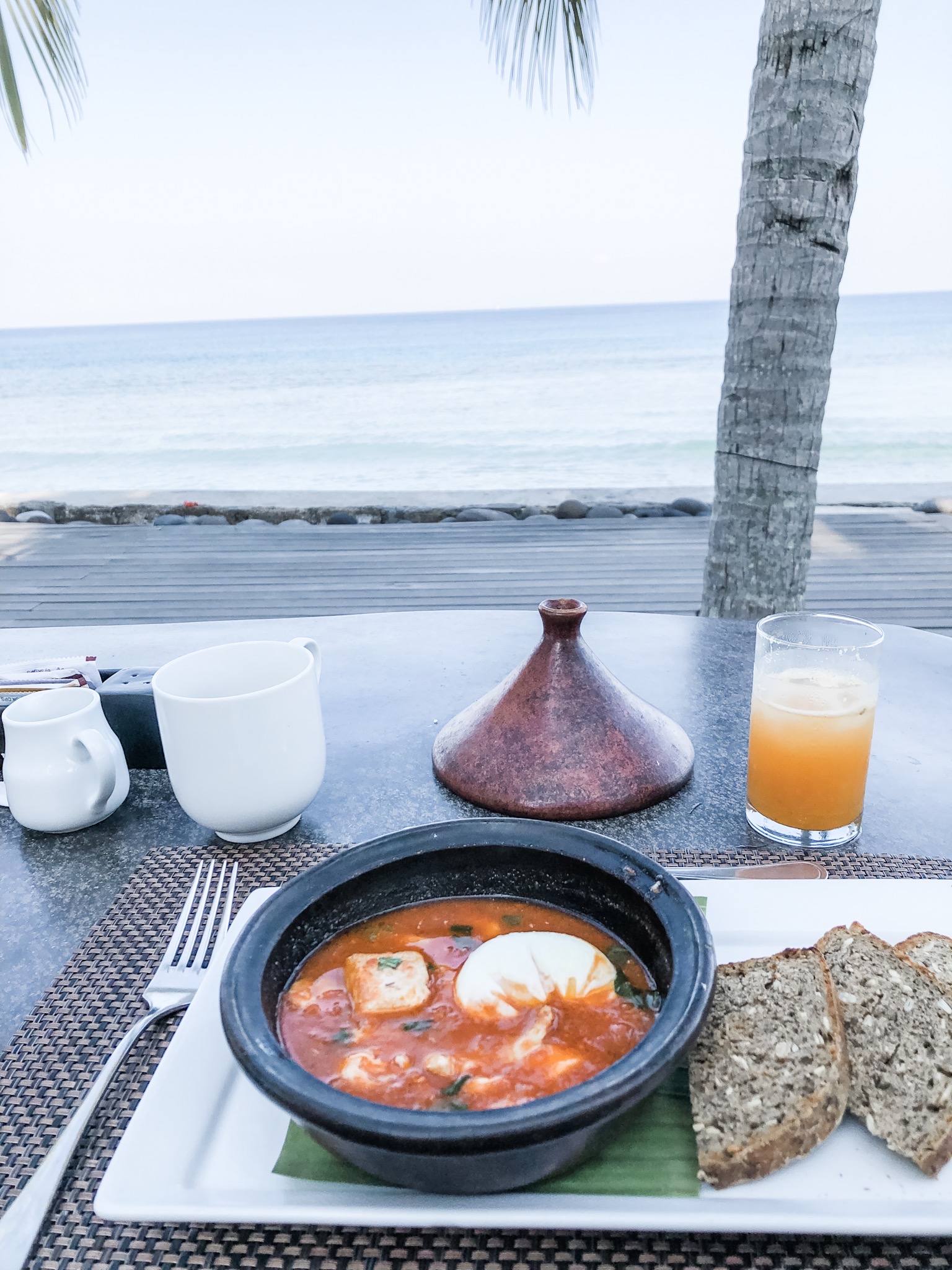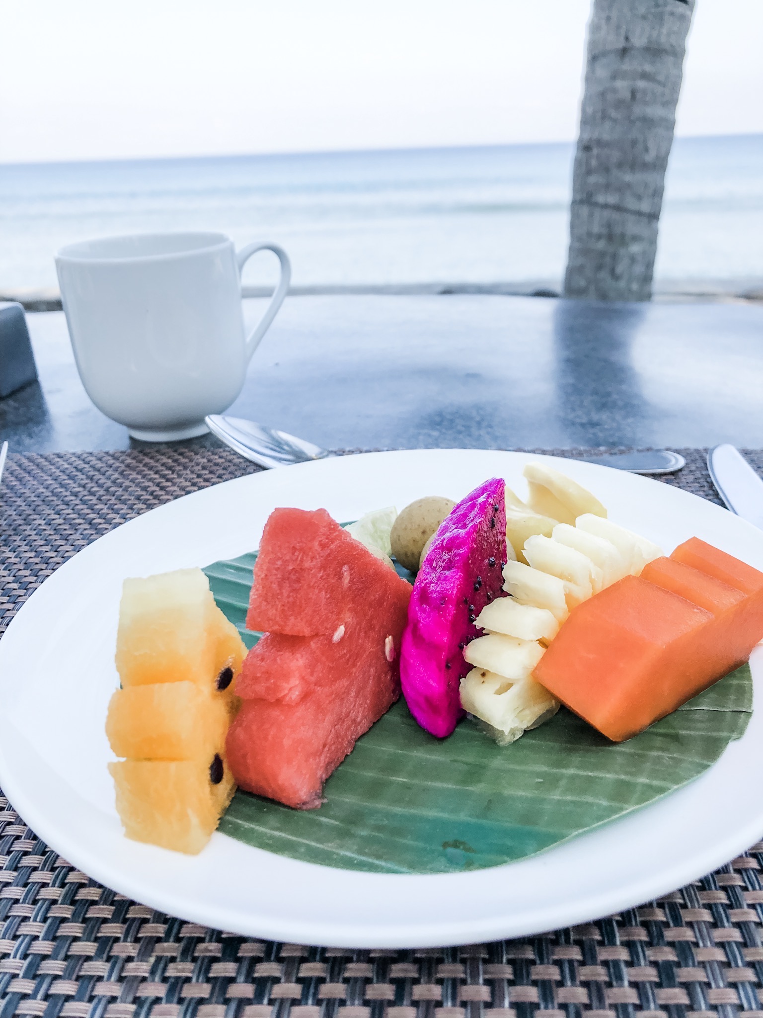 We’ve already covered that I enjoy eating. The food at the resort was soooo good! Since many of the guests come from around the world, the hotel offers a variety of foods that you can have throughout the day. Breakfast is included in your hotel stay (amazing!). This includes coffee or tea, a fruit plate along with your choice of entree. Since we were there for a week+, the Mister and I basically had everything they had to offer. There is also an Indonesian section, so I had a lot of local cuisine. Also, you can’t beat the view!