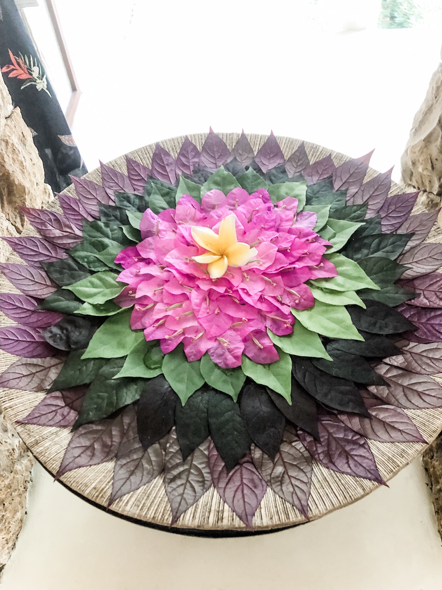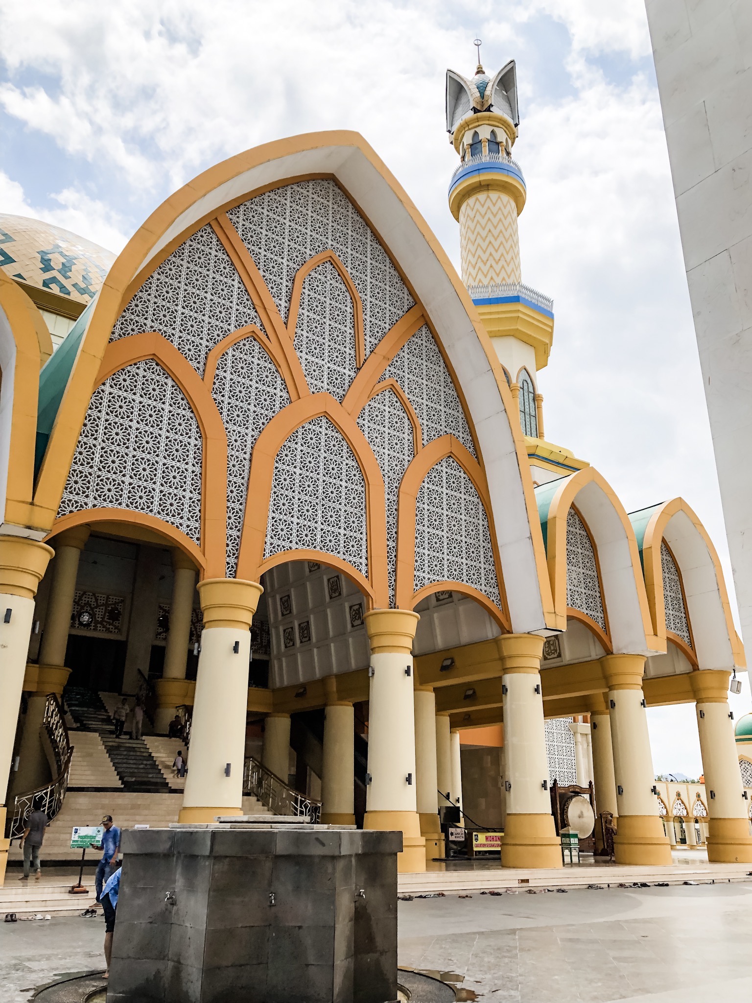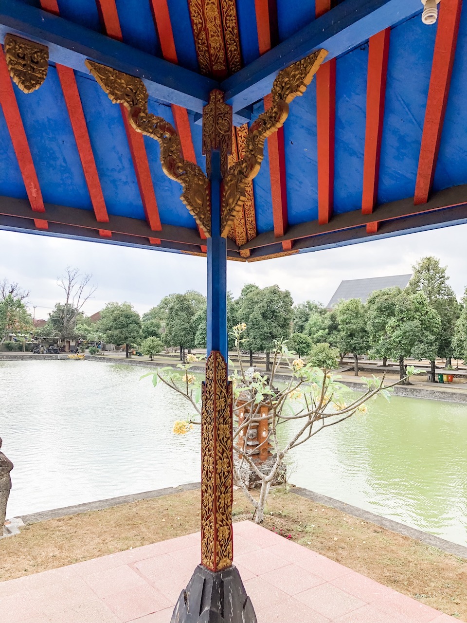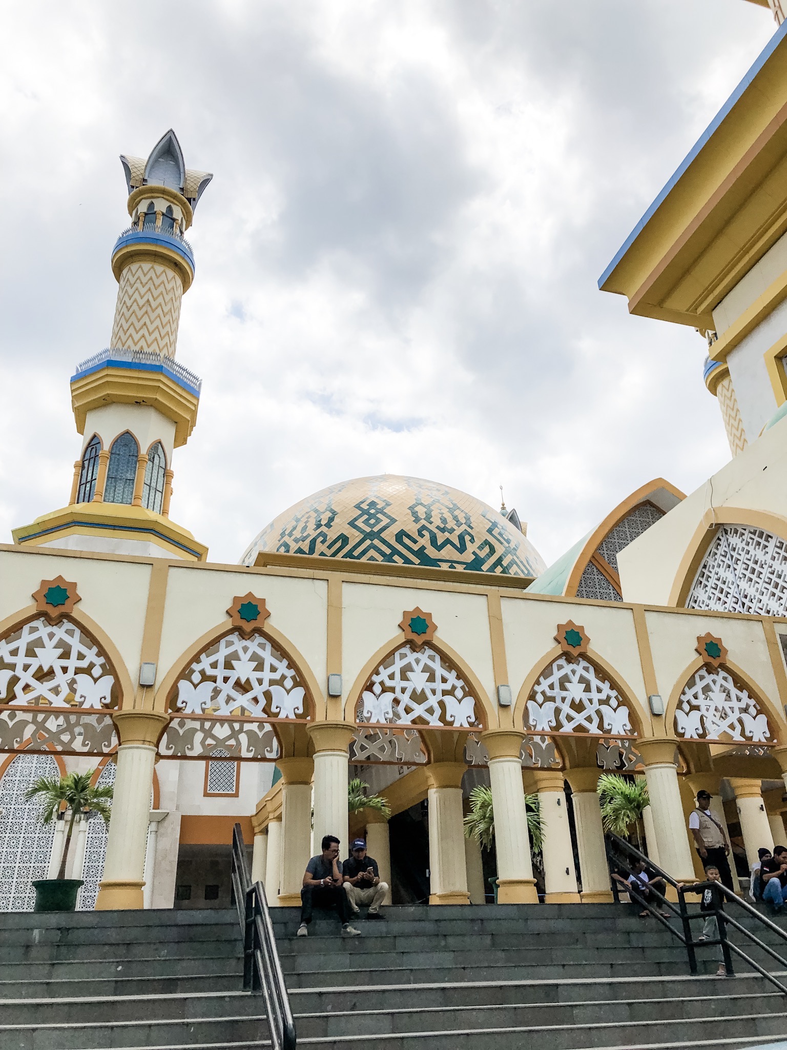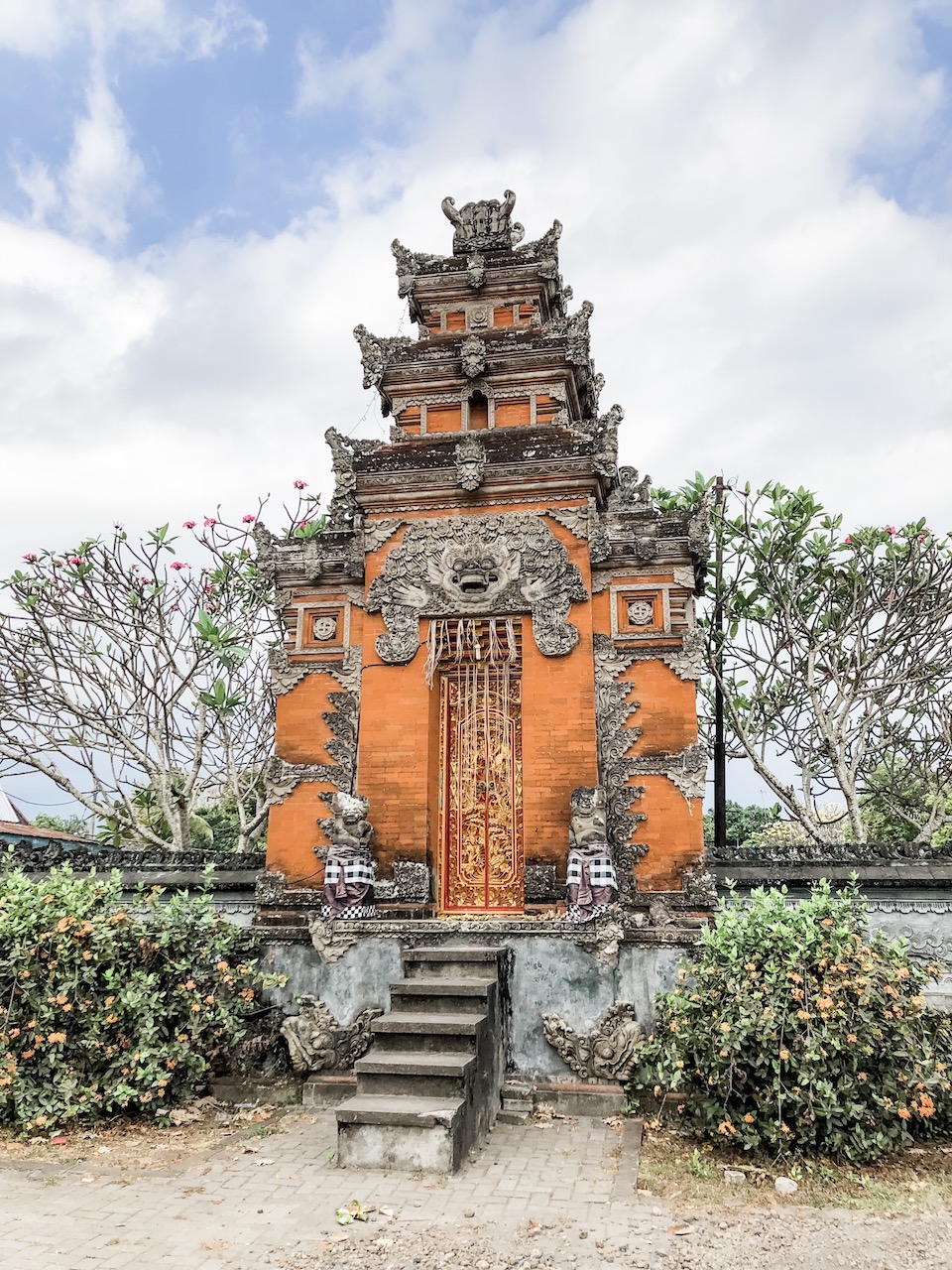 Religion can be found everywhere in Indonesia. I learned that Indonesians register their religious affiliation with the government once they reach a certain age. Lombok is predominantly Muslim, while Bali is primarily Hindu. Mosques are everywhere. We visited the Hubbul Wathan Grand Mosque, the largest mosque in the Nusa Tenggara Barat province in Lombok. Both traditional Lombok & Muslim Arabic styles decorate the interior. The piece hanging from the ceiling is symbolic of a Lombok flower. I also learned that green is a traditional Muslim color, so when we ventured to the roof, I could identify the mosques located in the area from the color of their roofs.